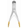 Alicate articulado:· de corte frontal con traducción.· Modelo extremadamente fuerte con inserciones de carburo tungsteno (TC) en un tamaño de 22cm.· Para cortar pins, postes de titanio, etc.