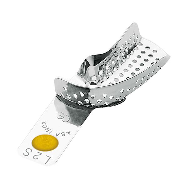 Cubetas para impresiones en edéntulos, sólidas, de acero inoxidable con reborde.