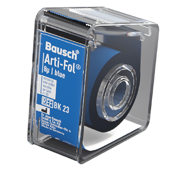 Papel ultradelgado de 8 micras. Para poder localizar cualquier pequeño contacto prematuro. Particularmente apropiados para la visualización de la oclusión estática y dinámica. 20 metros en dispensador unilateral – 22 mm de ancho color azul.
