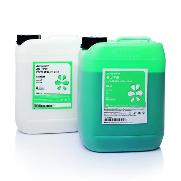 Silicona-A para duplicación en laboratorio. Ideal para duplicar modelos con socavaduras poco marcadas y revestimientos para fusión. Se recomienda la utilización de muflas de duplicación de plástico. Disponible en color verde claro para imprimir una mayor nitidez a la lectura de los detalles.1 botella de Base de 5 kg + 5 botella de Catalizador de 1 kg.