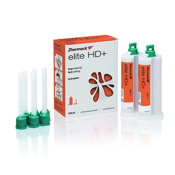 Silicona de adición de viscosidad alta.Paquete estándar: 2 cartuchos x 50 ml (Base + Catalizador) + 6 puntas mezcladoras verdes.