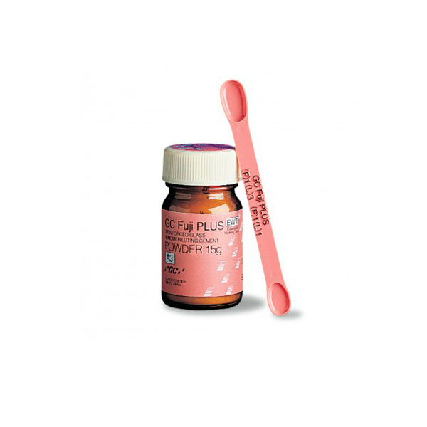 Cemento de ionómero de vidrio modificado con resina.GC fuji PLUS es un material multiusos y permite la cementación de:Restauraciones con base metálica, de zirconio, alúmina y resinas.Incrustaciones inlay feldespáticas y reforzadas con leucita.Restauraciones de disilicato de litio, especialmente cuando no se puede asegurar un aislamiento perfecto.Postes de metal, cerámica y fibra, y espigas y muñones colados.Polvo de 15g.