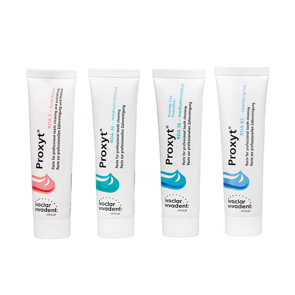 La pasta Proxyt se utilizan para la limpieza y pulido de los dientes de forma profesional.Abrasión de grado grueso.La pasta contienen flúor y xilitol y tienen un agradable sabor a menta.